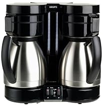 Two double walled insulated stainless steel thermal carafes equip you to serve plenty of hot fresh coffee at home or at the office. You can brew a pot of flavored or a pot of decaf in addition to a pot of regular. Brewing options allow you to brew as little as one 5 cup pot and as much as two 20 cup pots. It's equipped with the Krups Deep Brew system which features a special filtering action for maximum flavor without bitterness. It als has a specially designed heating and tubing system which minimizes calcification and leaves no residual water in the system when brewing is complete.