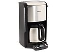 Make a better cup of coffee with the superior design of the Pro-Aroma 10 Cup Thermal Coffee Maker. Double walled vacuum sealed stainless steel carafe maintains temperature longer. Pause and brew feature lets you remove the carafe to pour without stopping the brewing cycle. Programmable to brew hot fresh coffee 24 hours a day. Bright easy-to-read LED panel with programmable timer clock and auto-off functions. Descaling measure calculates when it's time for a thorough cleaning. Empty water reservoir safeguards overheating the machine by automatically shutting unit off when empty. Audible signal lets you know when brewing is complete. Locking carafe lid seals in heat and flavor. Electrical cord stores conveniently in the base of the machine. Weight: 6 lbs. Watts: 1100. Dimensions: 8.5 wide x 8 deep x 13 high. Zappos makes every attempt to provide accurate information for each electronic product. Manufacturer packaging and specifications may be different from the information provided. Please note Zappos gladly accepts returns on all electronic products for up to 365 days from the original purchase date. In order to process your return and refund returned electronic products must be unused and in the original condition and packaging in which it was purchased and include any manuals cabling and accessories.